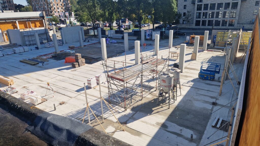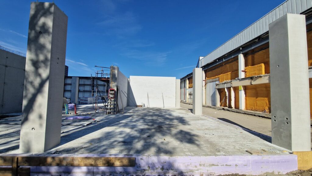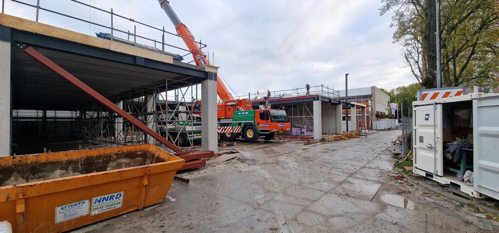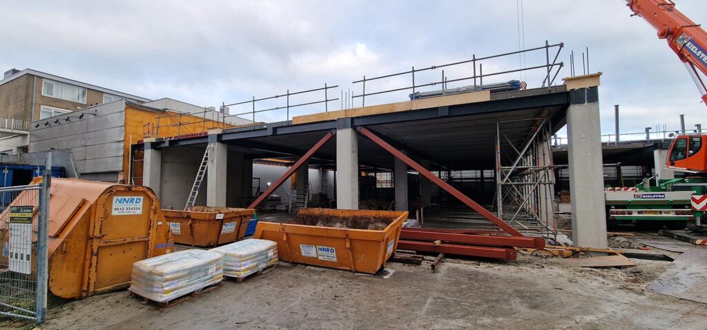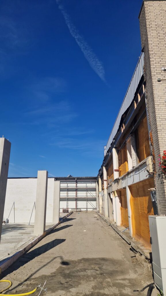Donderdag 2 oktober, we gaan nu echt zichtbaar bouwen, het plaatsen van de pilaren is begonnen. Ook wordt de nieuwe entree duidelijk zichtbaar.